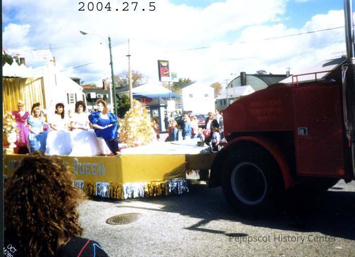 A color photograph of Brunswick's 250th Anniversary Parade (Oct 1989) showing the Parade Queen and her court riding on her float.