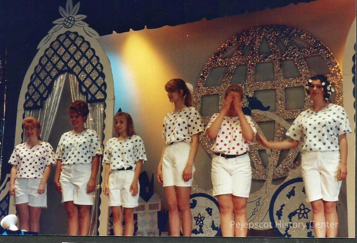 A color photograph of participants waiting to go through the pre-judging in costume. Darby Labbe did something wrong.