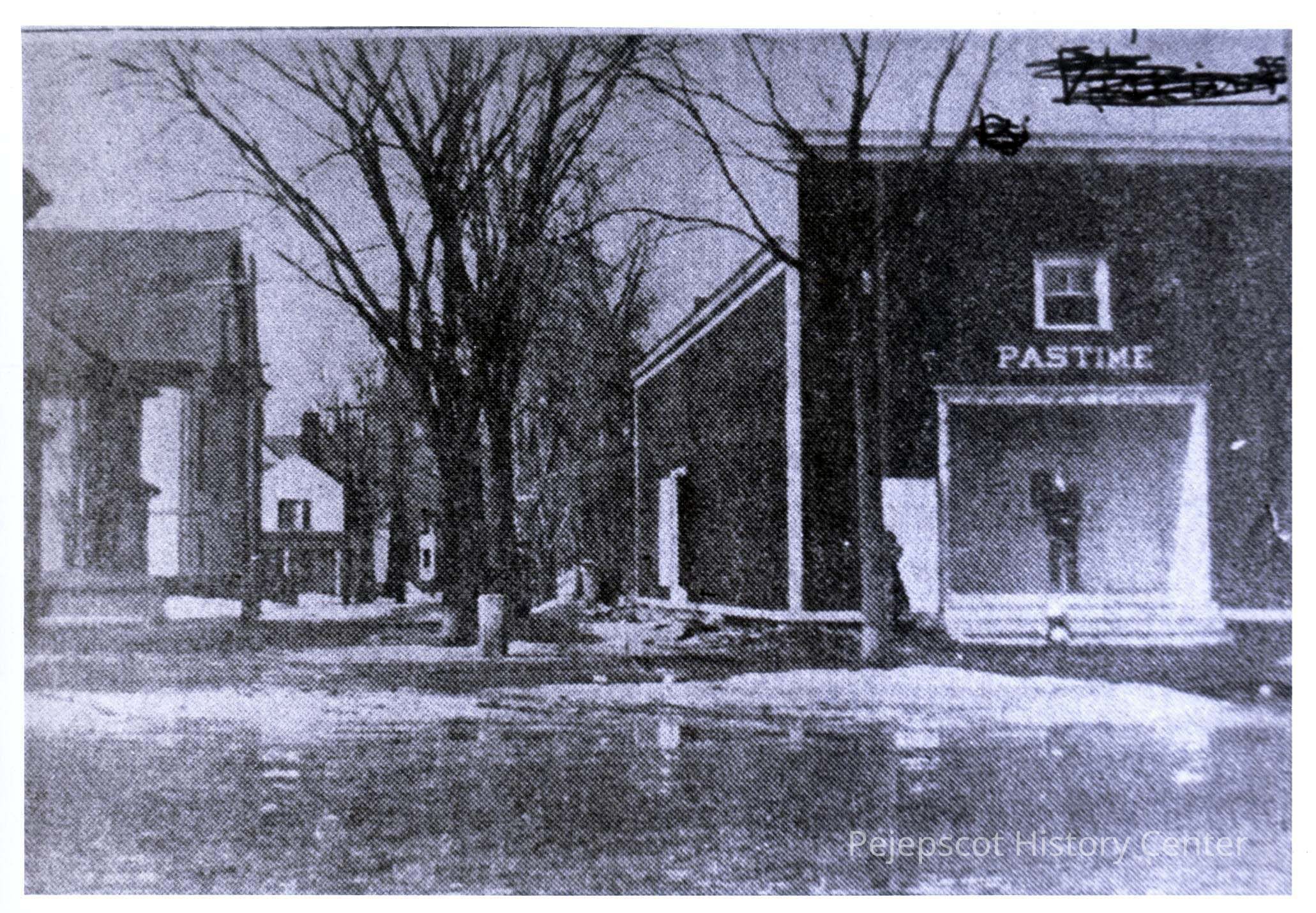 An undated B/W photograph of the Pastime theater on the corner of Maine Street and Cumberland Street, Brunswick, Maine.