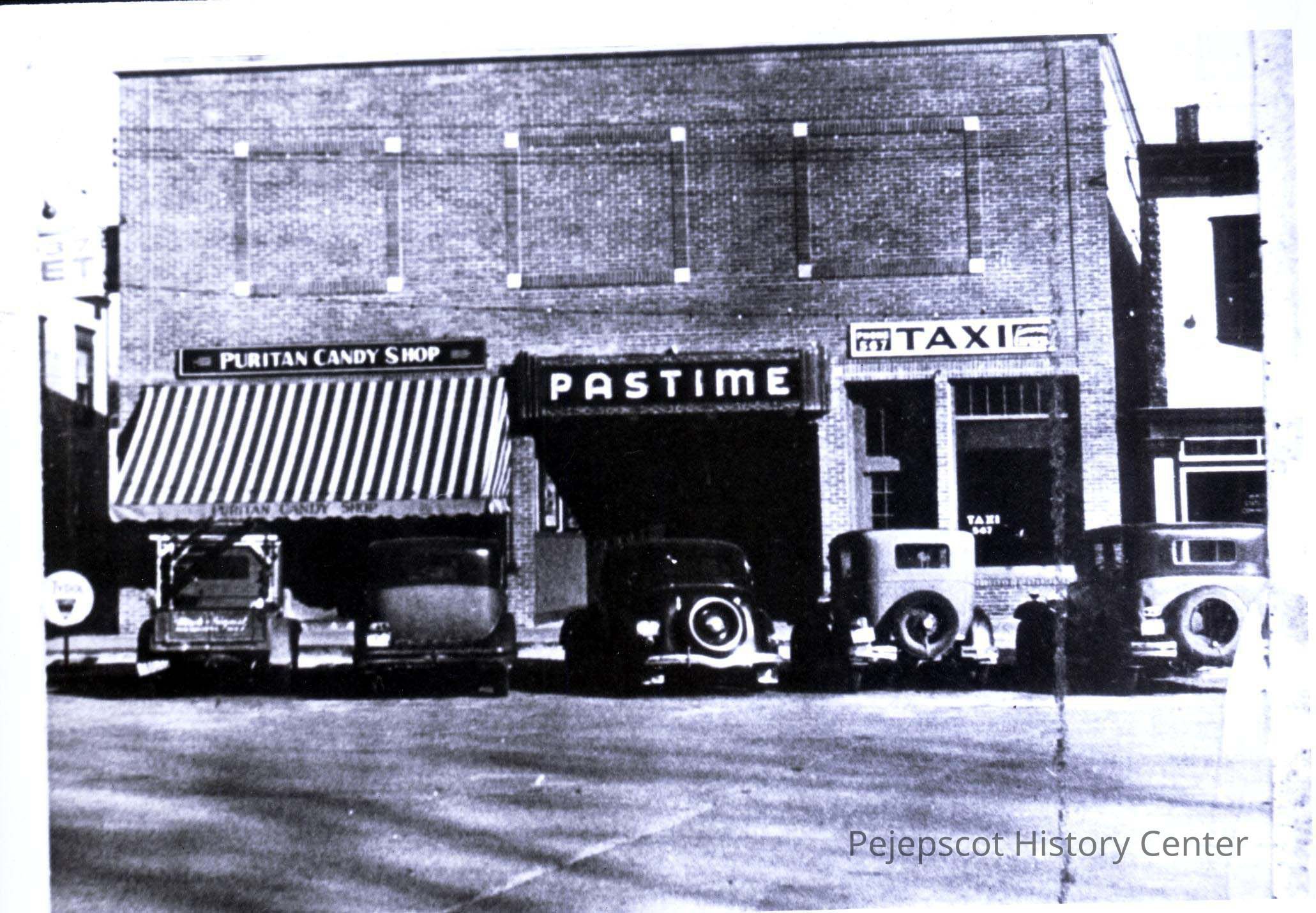 Puritan Candy Shop, Store fronts, Theaters - Brunswick, Theatres - Pastime theatre, Maine Street, Taxi's