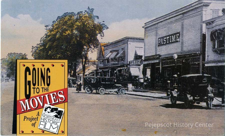 An undated color postcard announcing "Going to the Movies," a project of Northeast Historic Film of Bucksport, Maine, features an undated photograph of the Pastime Theater on Maine Street in Brunswick.Collection