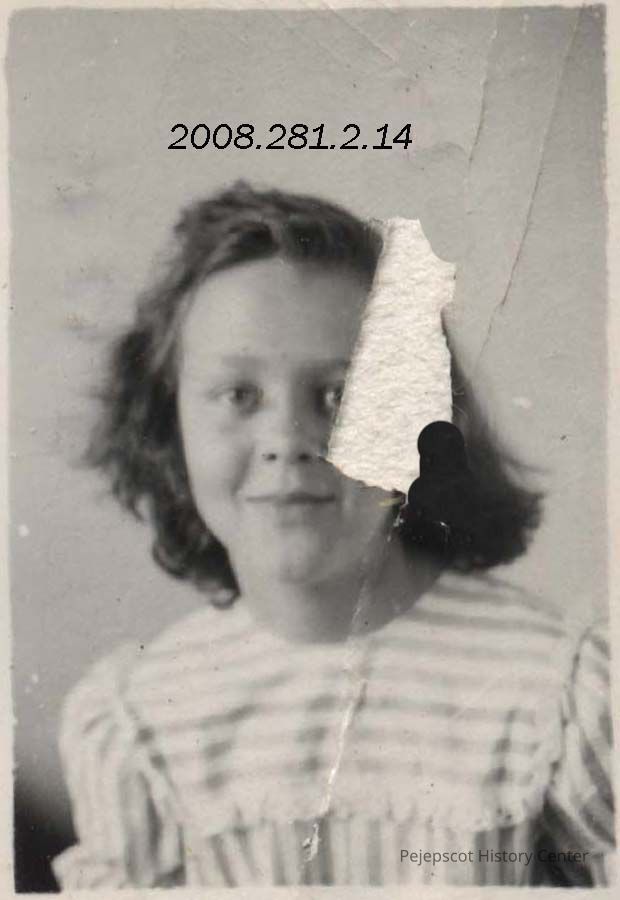 A small children's photo album with very small pictures of classmates in it. Class of 1949 (Growstown School?) This is a photo of Patricia Fisher. Undated