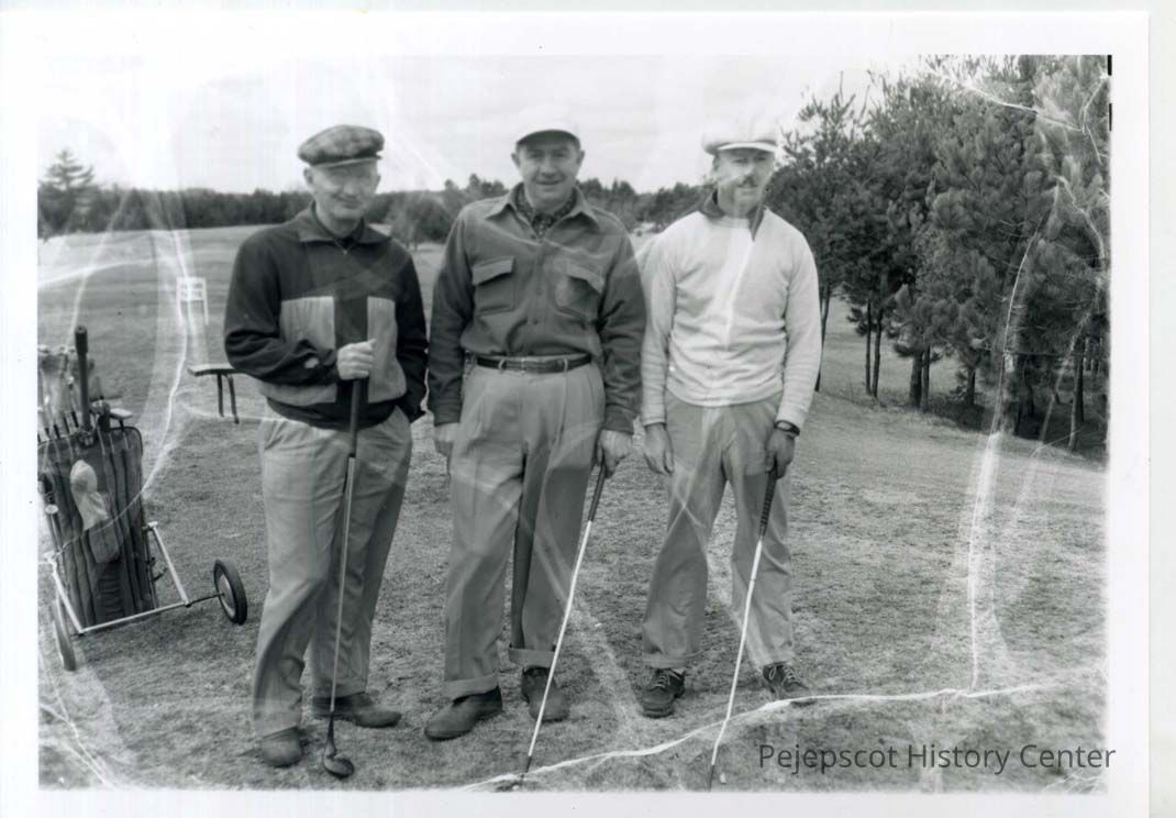 Three golfers pose at the Patriot's Day Golf Tounrey on 4/16/55.