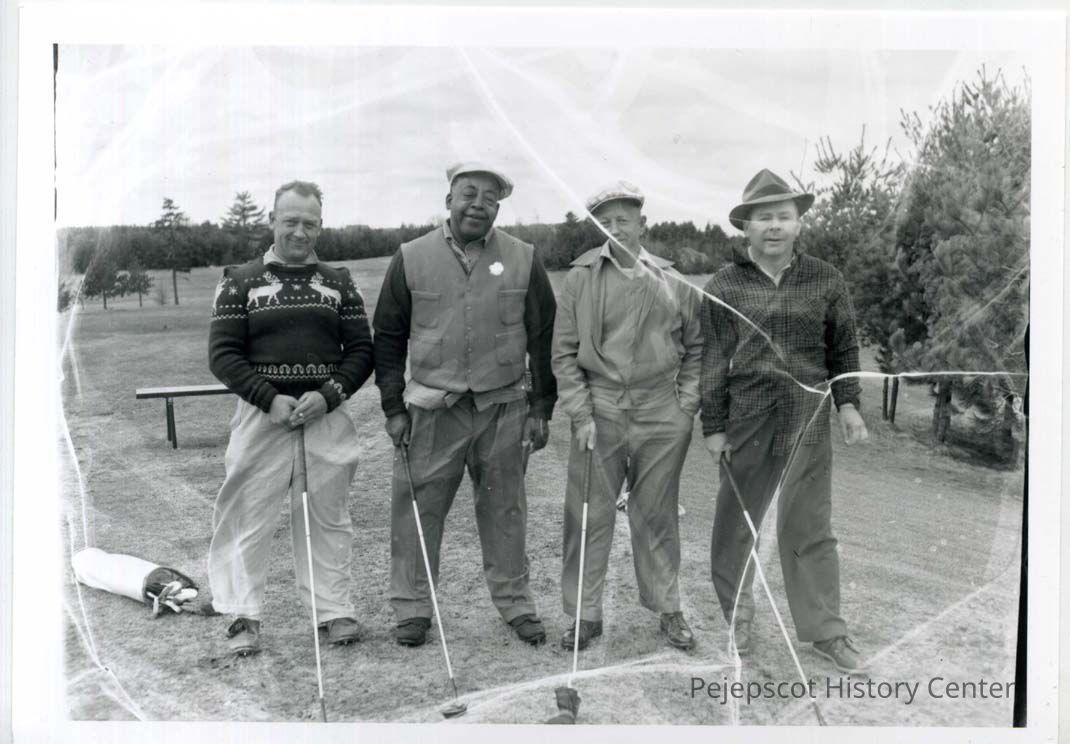 Four golfers pose at the Patriot's Day Golf Tournament on 4/16/55.