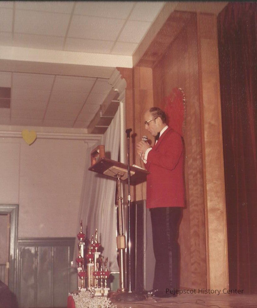 Paul Bergon President of the Brunswick C. Y. O. welcoming the audiance to the 14th annual Brunswick Teen Queen Pageant and introducing Gerry Menard as M. C. for the evening.Collection