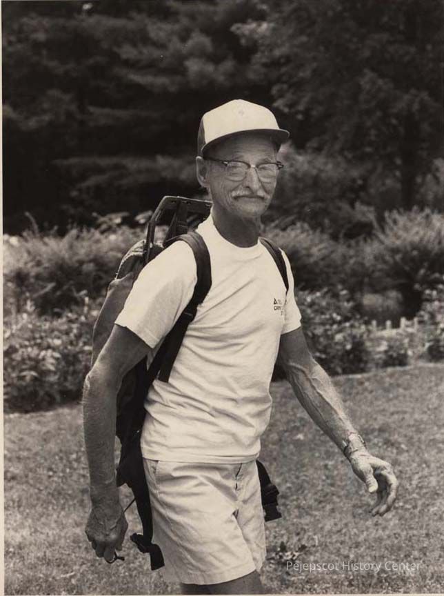 A black and white photo of Paul Wentworth of Freeport, an avid hiker who had qualified for the Four Thousand Footer Club by hiking all 64 New England mountains 4,00 feet or higher. The photo was published in The Times Record in Brunswick, Maine, on 8/6/1989.
