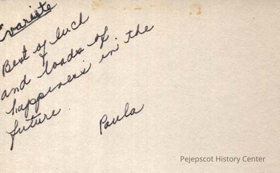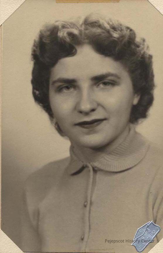A B/W photograph of Paula Viney. Brunswick High Class of 1950. She gave the photo to Evariste Bernier. Undated