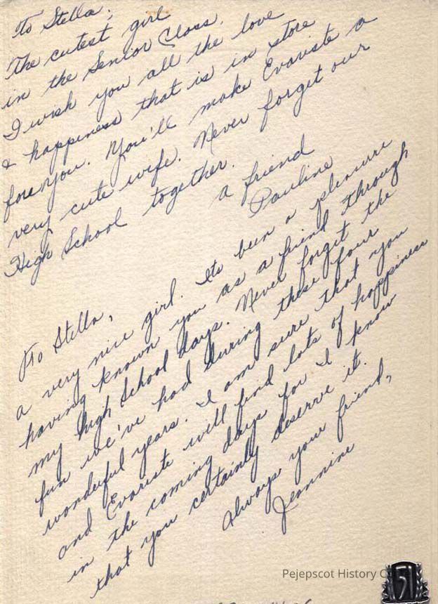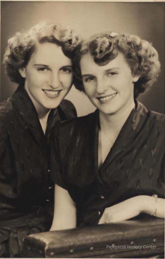 A B/W graduation photograph of Pauline and Jeannine Poulin (twins), Brunswick High School Class of 1951. They gave the photo to Stella Purinton. Undated