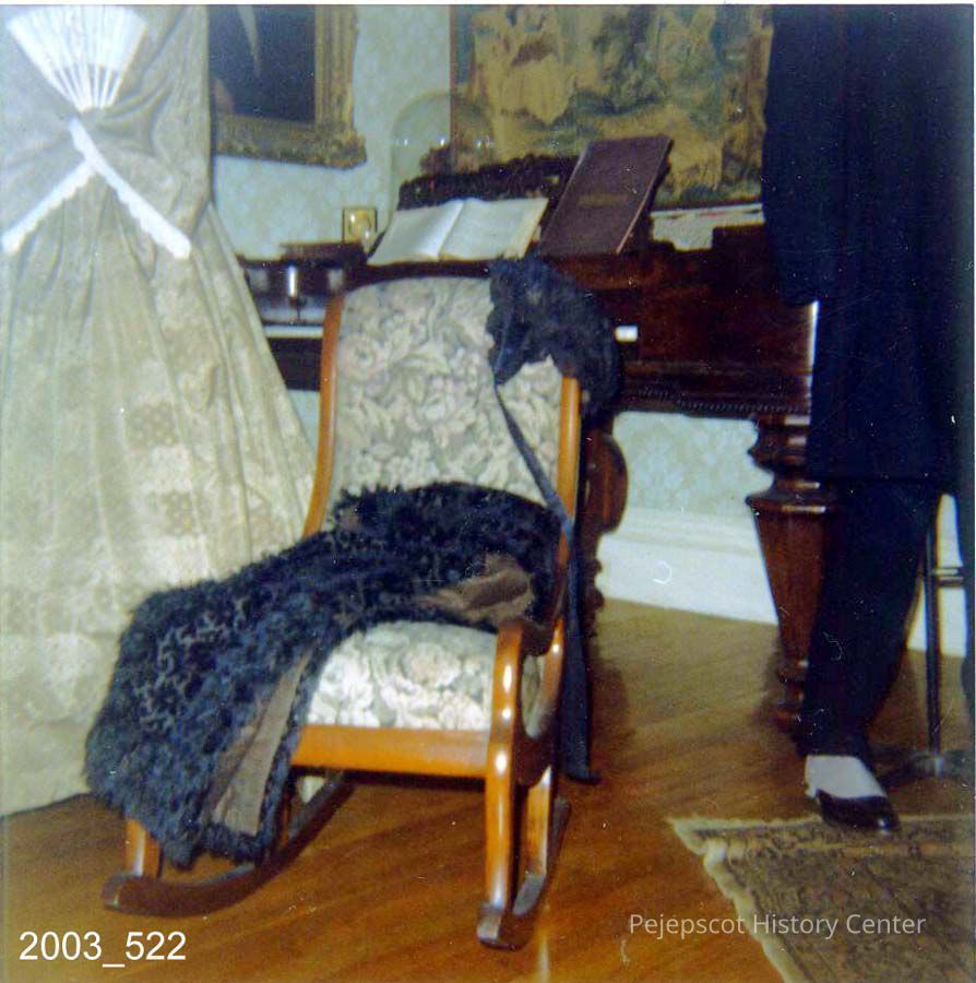 An undated black and white photograph of a display a the Lincoln Street Museum of Pejepscot Historical Society in Brunswick, Maine.