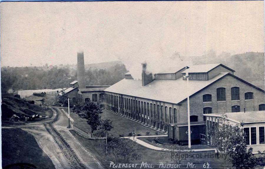 B/W postcard of the Pejepscot Mill, Pejepscot, Maine. To Mrs. H. M. Merriman, 44 Franklin St., So. Framingham, Mass. Postmarked Pejepscot, Maine July 18, 1910.