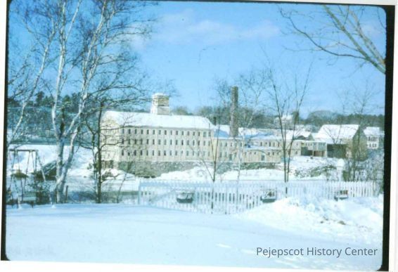 Color photograph of the Pejepscot Paper Company Mill, Topsham, Maine. Taken from Water Street in Brunswick. The photograph was produced from a slide.Collection