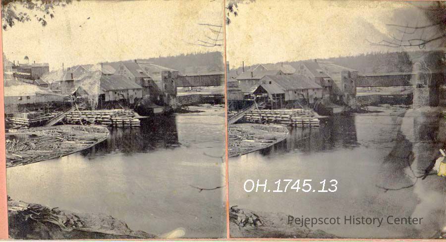 A stereo view photo of the Pejepscot Pulp Mill, Topsham, ME. Not dated.
