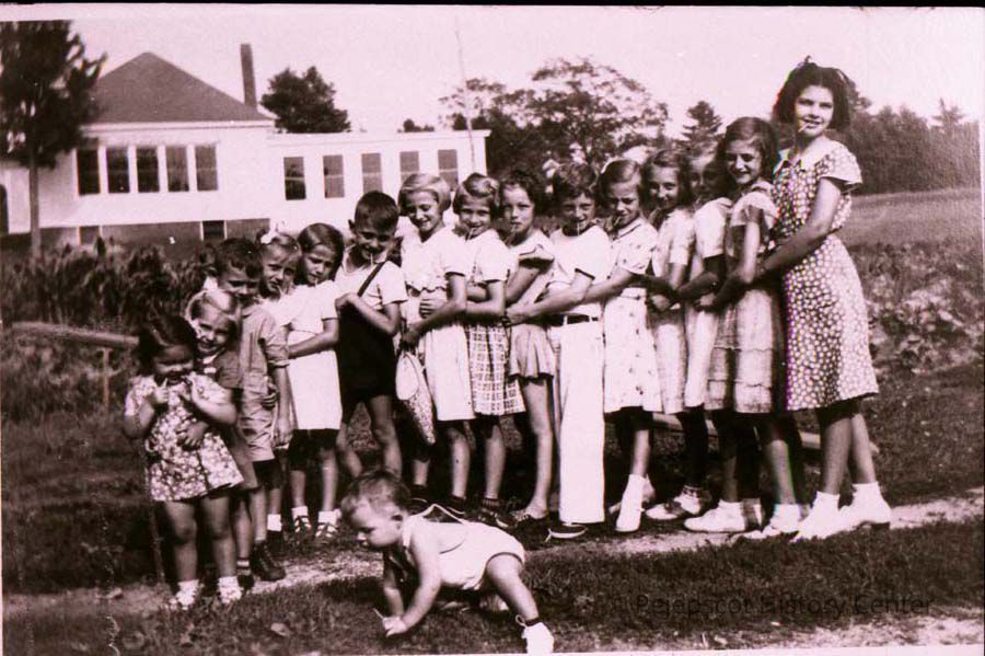 B/W photographic copy of a negative of a Pejepscot, ME, School Party. No date.