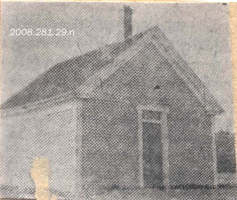 A B/W photograph of the Pennellville School. Was made into a house in 1954. This photograph is glued into scrapbook 2008.281.20. Undated