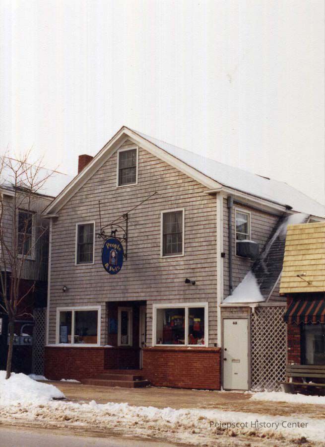 An undated color photograph of the People and Pets store on lower Maine Street.