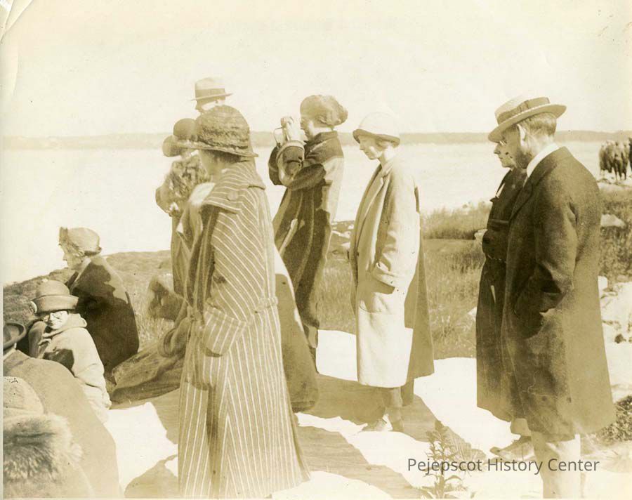 Photo of people watching "Around the World Flyers" Sea Planes, 1924, Mere Point, Brunswick, Maine.