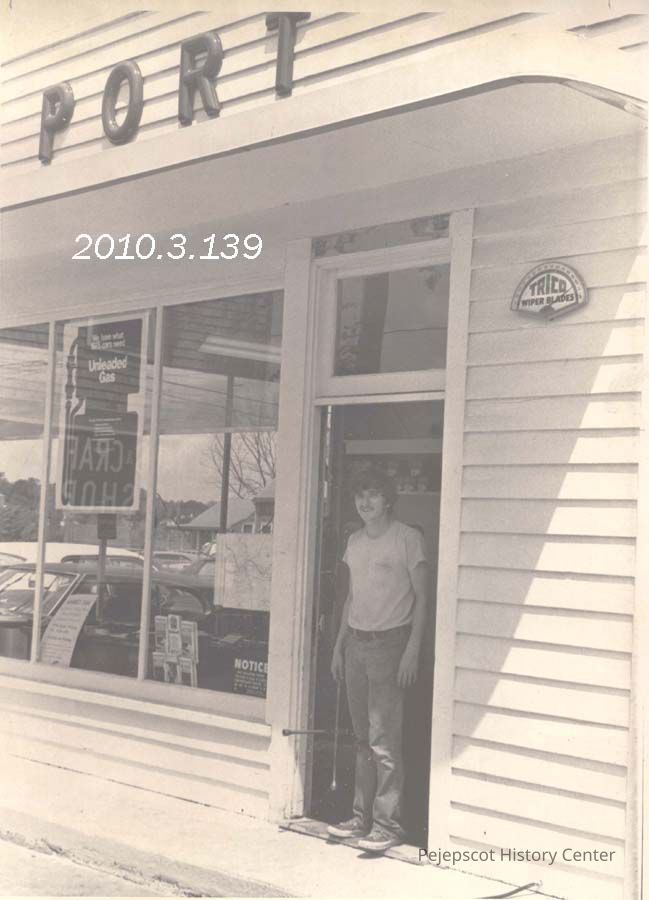 A B/W photograph of Peter Trudell manager of the Port Oil gasoline station on Maine Street. Photo published 7/23/1975. Undated