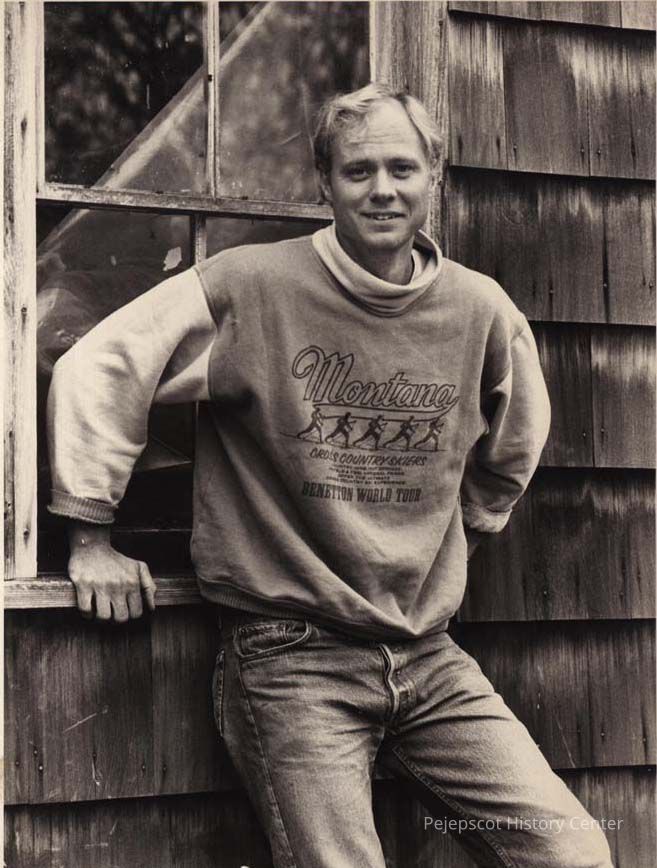 A black and white photograph of artist Peyton Higgison was published in The Times Record in Brunswick, Maine, on 10/23/1987.