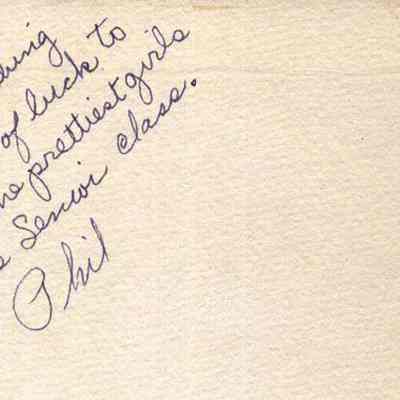 A B/W graduation photograph of Philip Livernois, Brunswick High School Class of 1951. He gave the photo to Stella Purinton. Undated