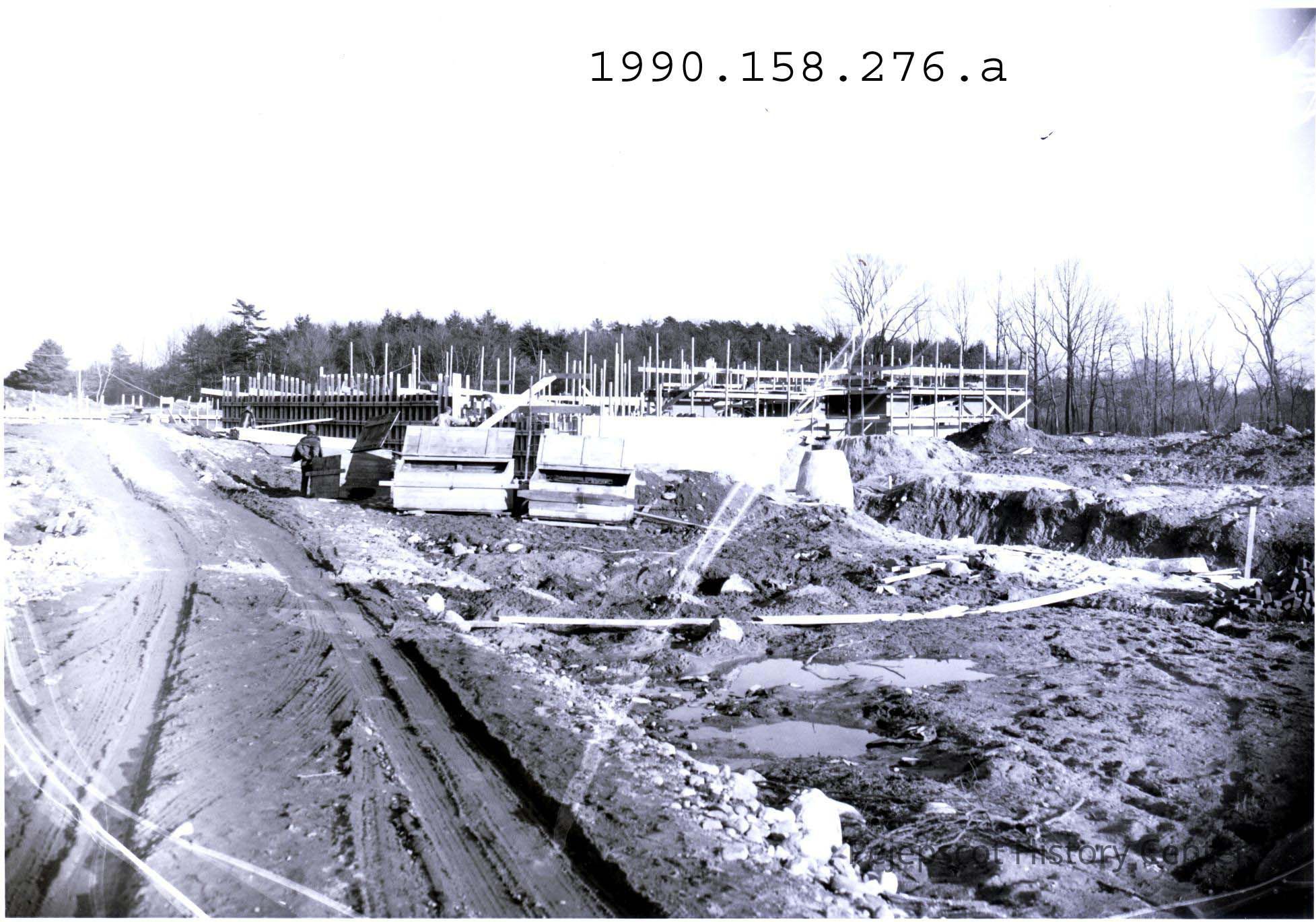 A B/W photograph of the Coffin School under construction. It shows the foundation being readied.