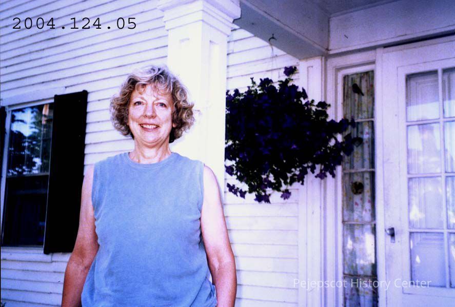 A 4 X 6 color photograph of Lynn Ensign in front of her house on Stetson Street.