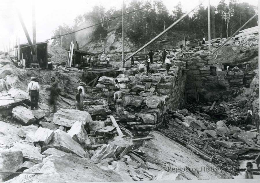Photo of Pejepscot Paper Company during Construction of Pejepscot Dam, Aug 1, 1893.