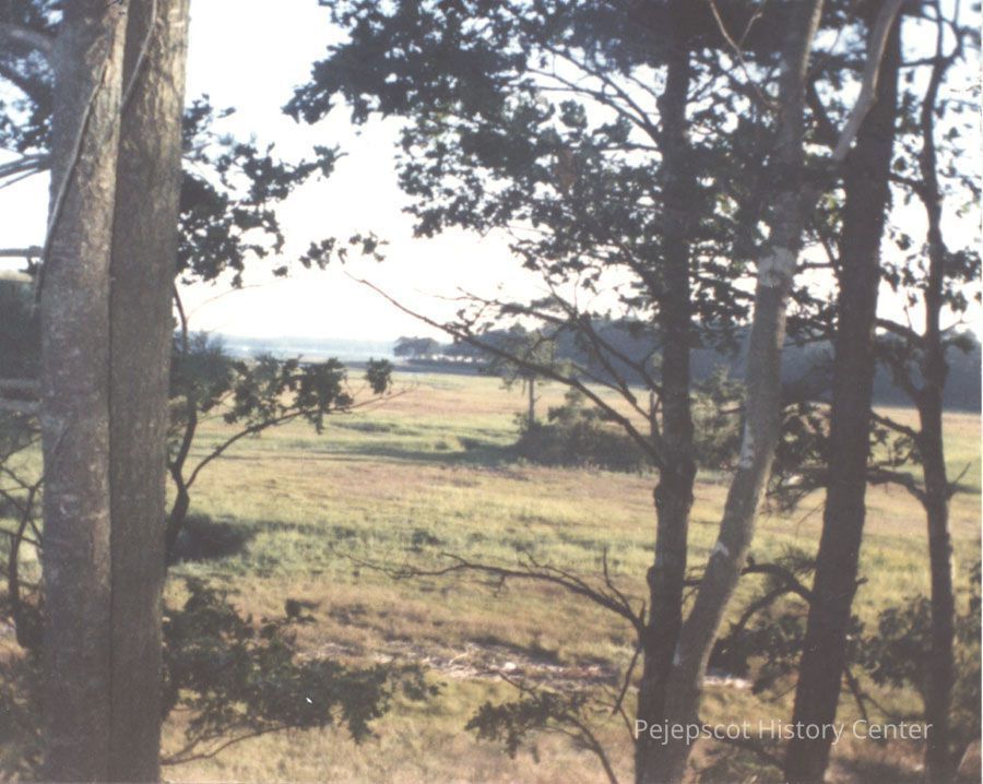 A color photograph of Thomas Point Beach. The photo was taken from a nearby cemetery. 9/1986 Marked on the back, "View of Thomas Point Beach (Brunswick, Me.), taken 9/1986 Labor Day weekend from the hill in the corner of the cemetery."