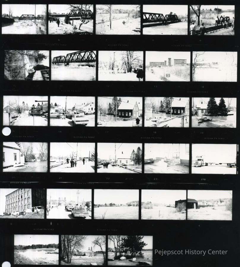A sheet of small photos of 1987 flood.