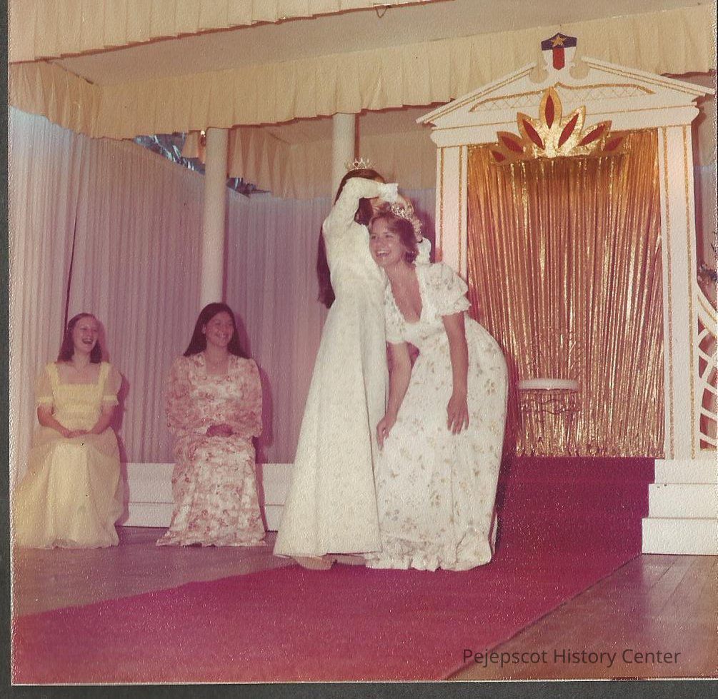 Phyllis Gaudreau Teen Queen 1976 crowning her successor Becky Beck Teen Queen 1977Collection