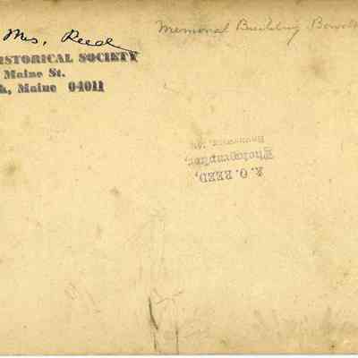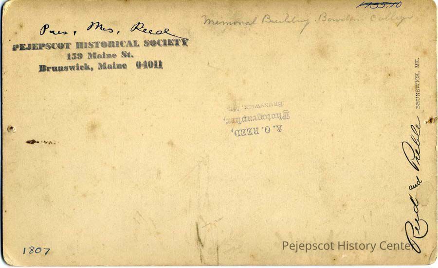 A B/W photograph of Pickard Theatre, Bowdoin College, Brunswick, ME Marked on the back, "Memorial Building, Bowdoin College". Not dated.