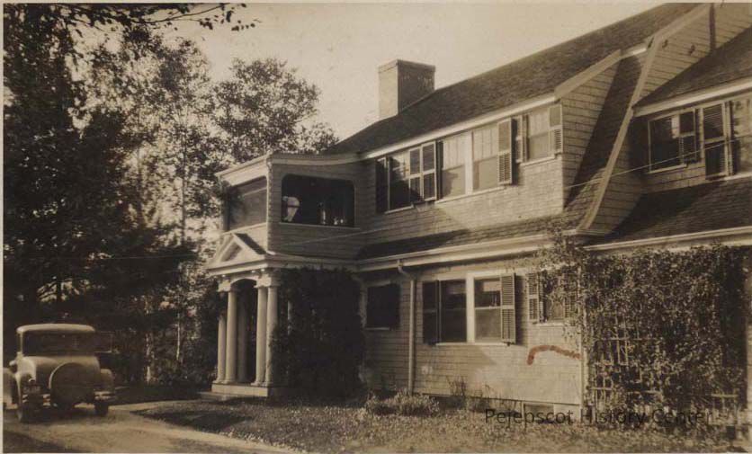 A B/W picture postcard of a house. The card is addressed to Miss S. G. Simpson, 8 College Street, Brunswick. It was postmarked 12/23/1911. It has a one cent stamp attached. This is the same house as in 2012.39.160.Collection