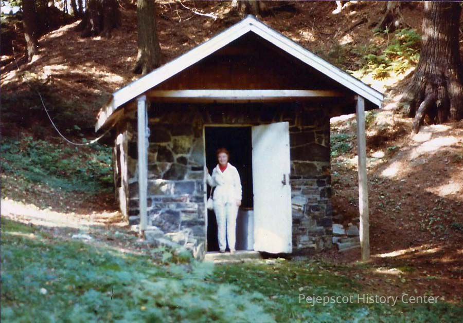 A color picture postcard of Florence Ormsby Galpern in front of the "Spring House" Pine Spring Water Co. 1982.