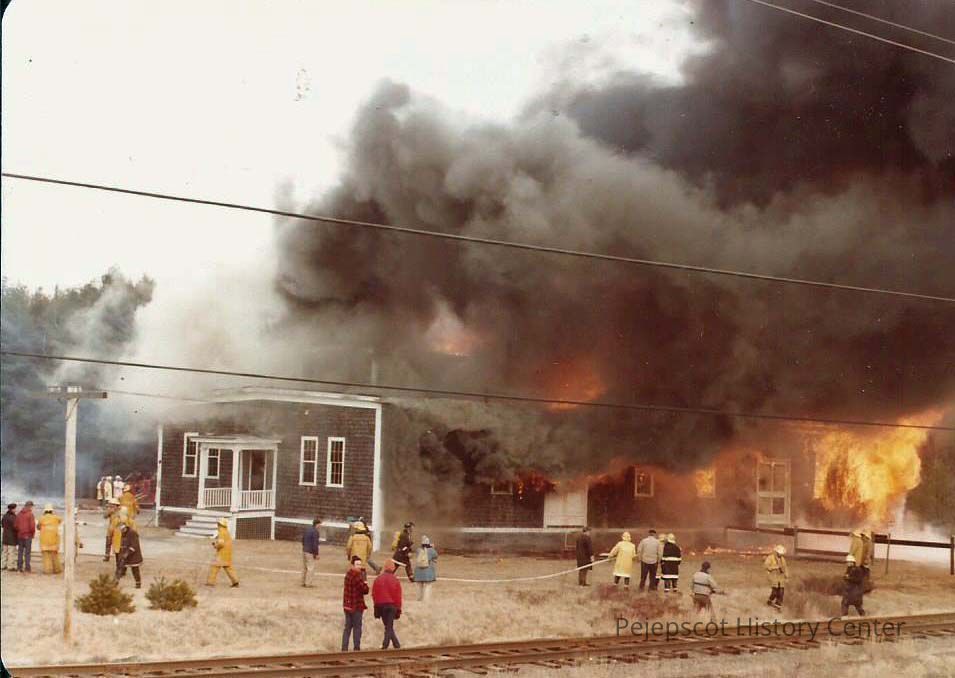 Pine Spring Water Co. building burning