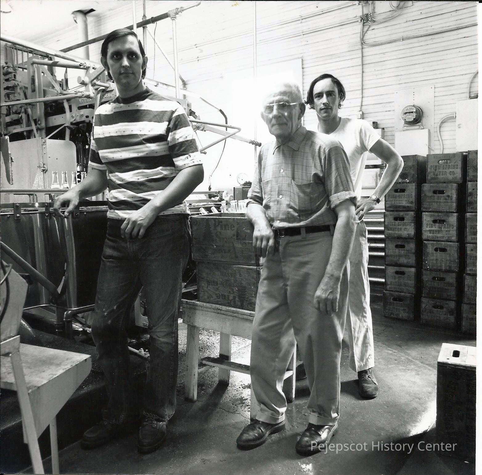 A b/w photograph of the Pine Tree Water Company crew. Photo by Mark Royall, 185 Park Row, Brunswick, ME. 08/1973