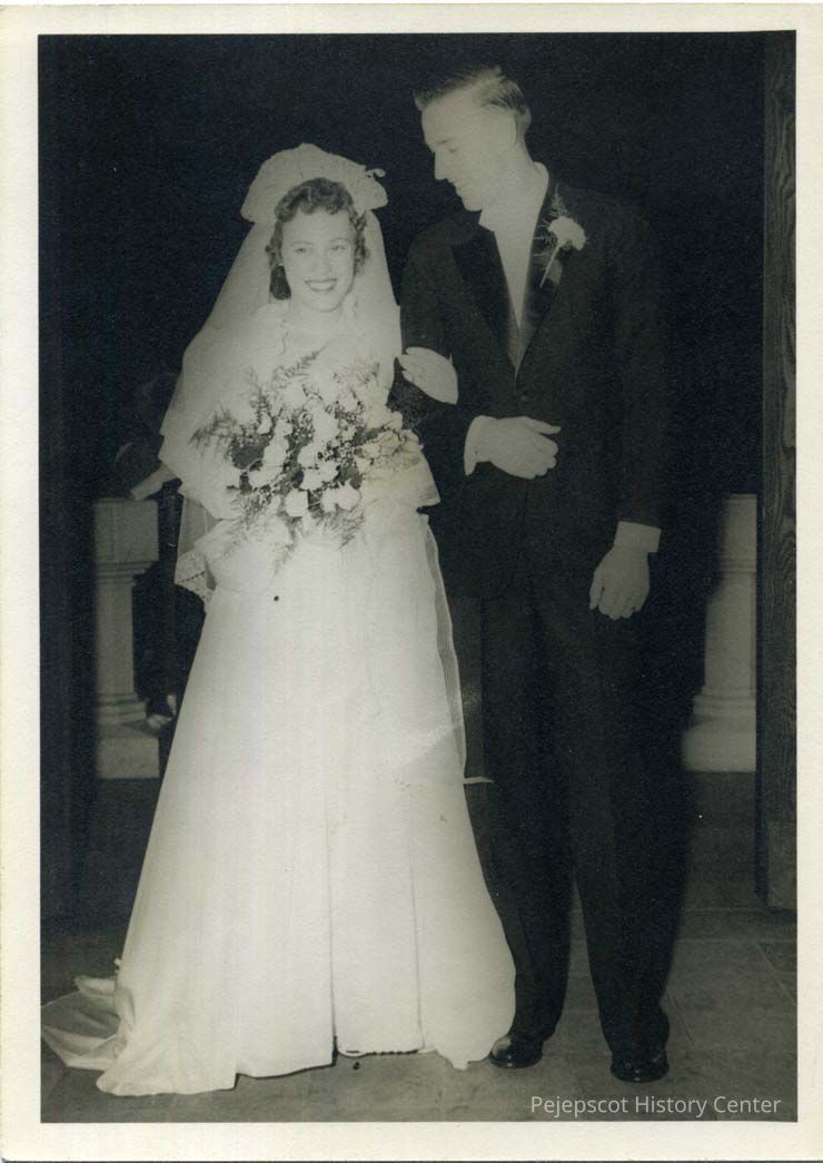 Simonne Pinette and Ralph Atwood at their St. John's Church wedding. Unverified date: 06/23/1947