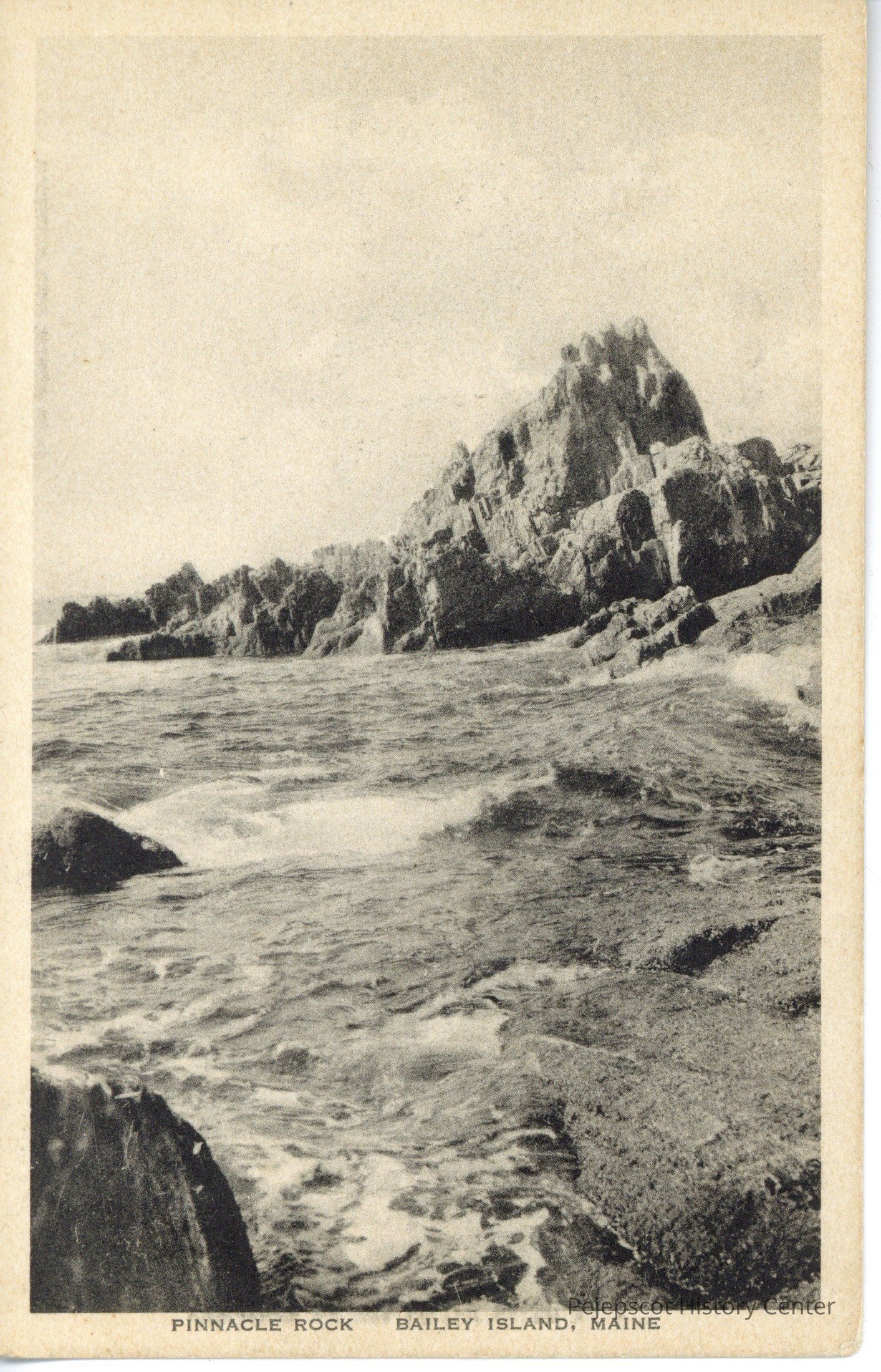 Black and white photo postcard of Pinnacle Rock, Bailey Island, Maine.Collection