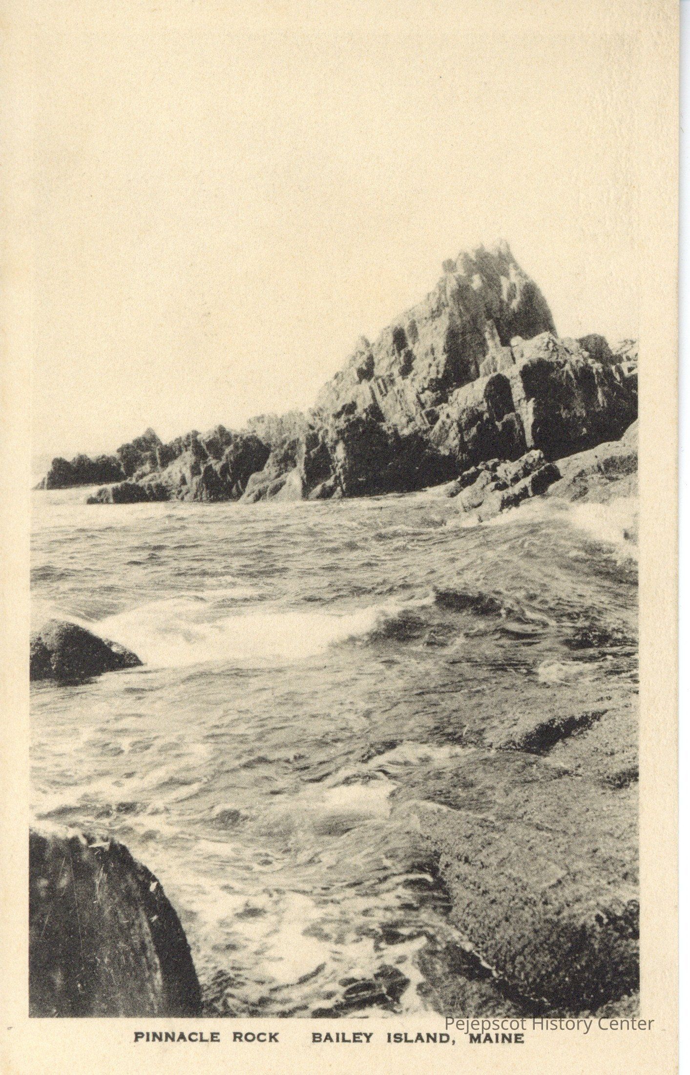 Black and white photo postcard of Pinnacle Rock, Bailey Island, Maine.Collection