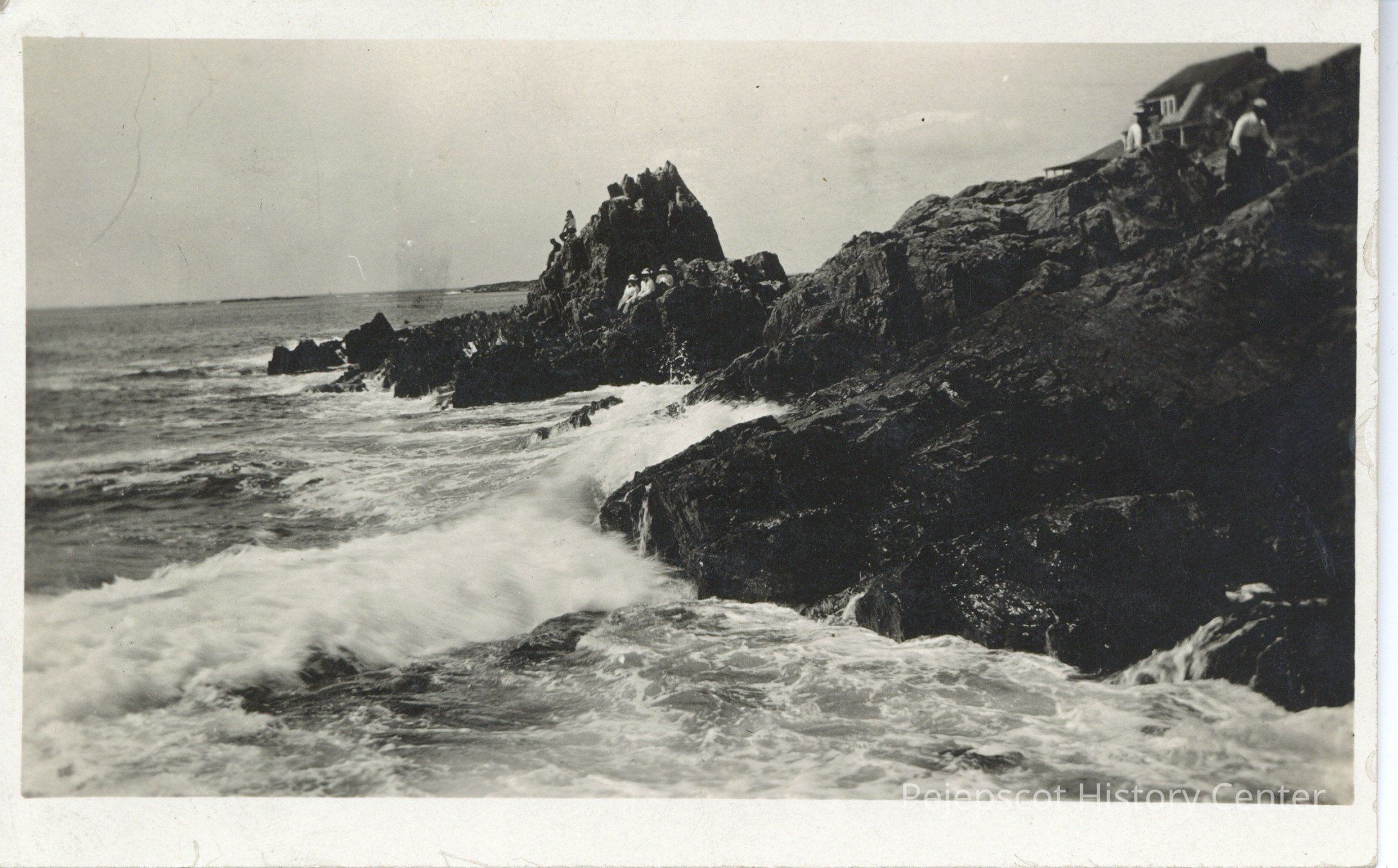 Black and white photo postcard of Pinnacle Rock, Bailey Island, Maine.Collection