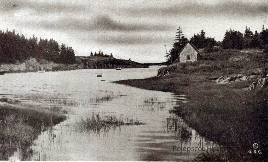 A B/W photo of Pirates Cove on Haskell's Island, Harpswell