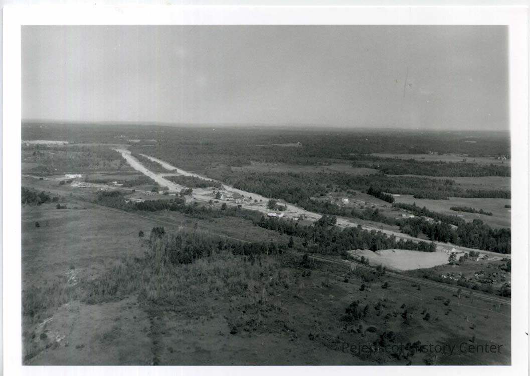 An aerial photo showing Pleasant Street and the dual highway on August 13, 1956.