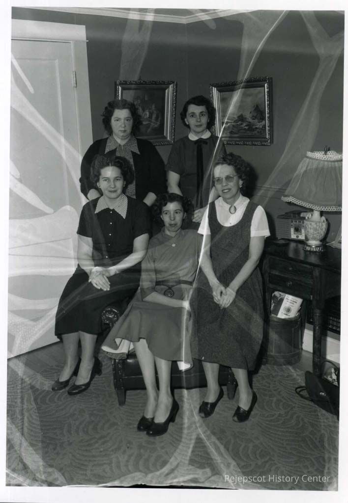 This photo shows the members of a committee from the Pleasant Street First Method Church working on plans for the spring fashion show. Seated left to right are: Mrs. William Lamb, Mrs. Thomas Cordente, and Mrs. Charles Lishness. Standing left to right are: Mrs. Carlton Wilson and Mrs. Perley Gowell.