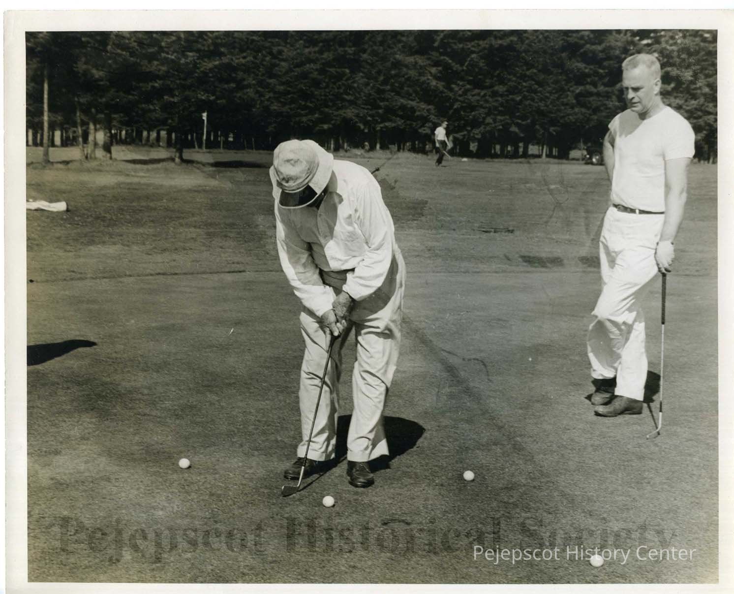 Two men are pictured on the golf course one of whom is "Pop" Erswell. Undated