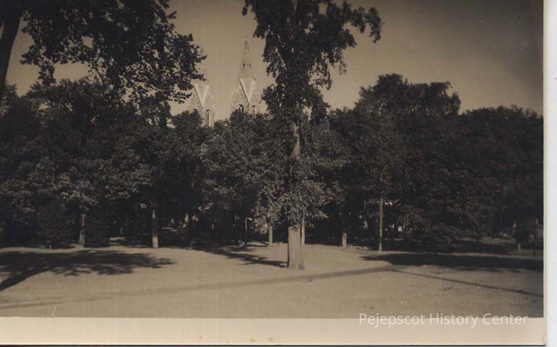 Postcard of Bowdoin College Chapel in summer. Brunswick, Maine.