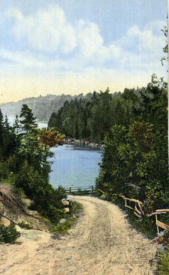 A colored picture postcard of Orr's Island showing the road where the bridge connects Orr's Island with Great Island. Harpswell. Maine. Not dated.