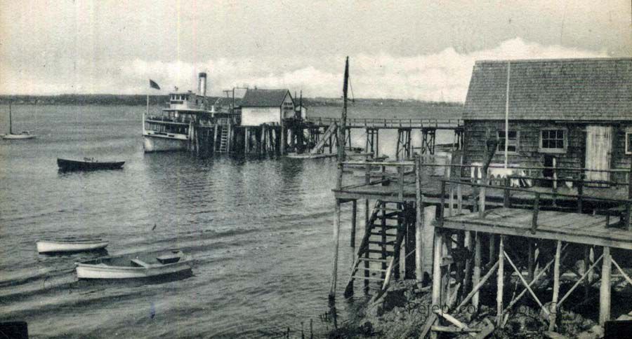 A B/W photograph of Prince's Wharf, Bailey Island.
