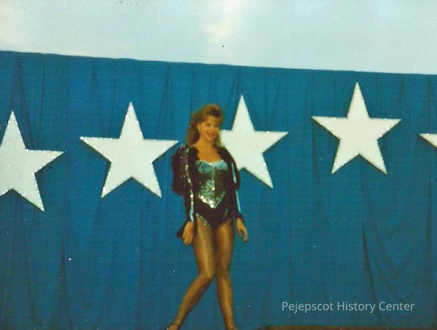 A color photograph of Lisa Kelly doing a dance routine at the Topsham variety Show. 8/12/1988