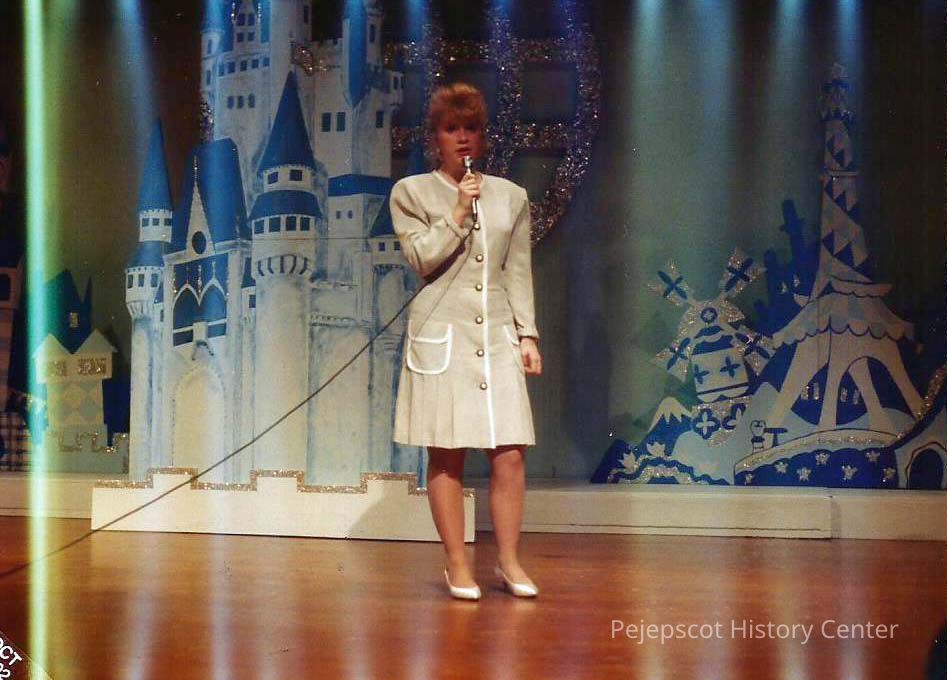 A color photograph of Denise Matheson singing. Photographer's # B-25 CYO sponsored