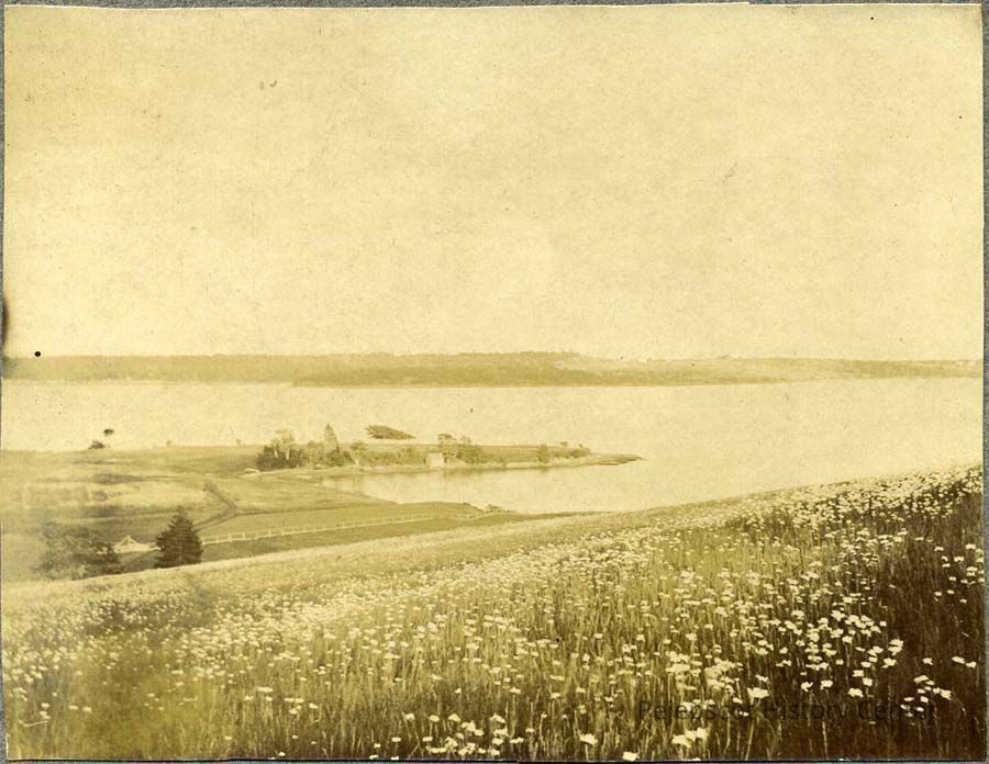 A sepia-toned photo of the view from Garrison Hill Farm, Merriman House, Harpswell.