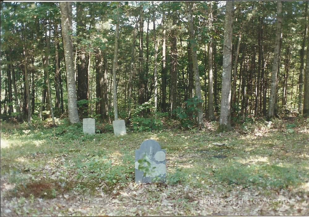 A color photograph of a tiny Private Cemetery on the Old Bath Road. Photo taken by Phyllis Shaunesey 8/1991Lexicon