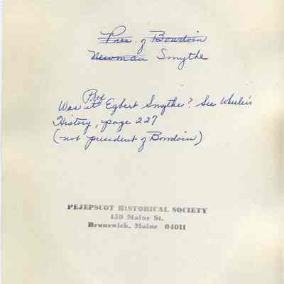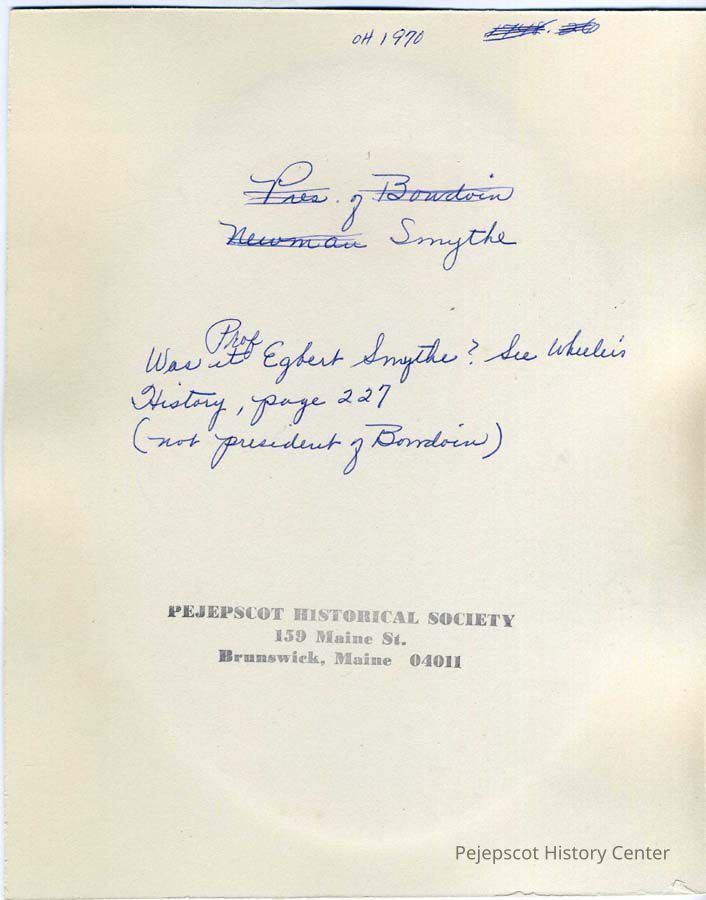 A B/W photograph of Prof. Egbert Coffin Smyth of Bowdoin College, Brunswick, ME. Not dated.